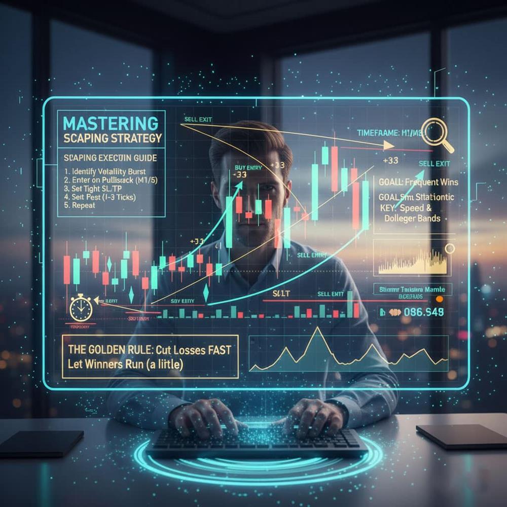 روش اجرا: معاملهگر معمولاً پس از یک پولبک سریع یا شکست سطح کوتاهمدت وارد بازار میشود. حد ضرر باید تنگ (۳ تا ۸ پیپ) تعیین شود و اهداف سود کوچک (۵ تا ۱۲ پیپ) در نظر گرفته میشود. برای مدیریت بهتر، میتوان بخشی از سود را سریع قفل و بخش دیگر را با تریلینگاستاپ دنبال کرد.