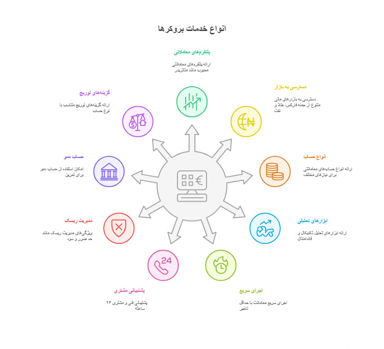 بروکرها واسطهای میان معاملهگر و بازار جهانی هستند. نقش آنها شامل: